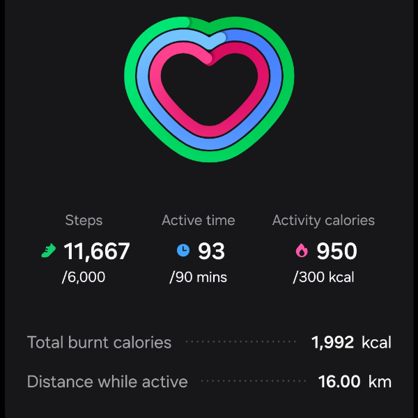 My tracker shows my steps for the 8 days of the challenge from 26th March to 2nd April. My goal progression shows all my steps including any I have done outside of the challenge days.