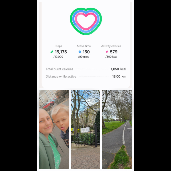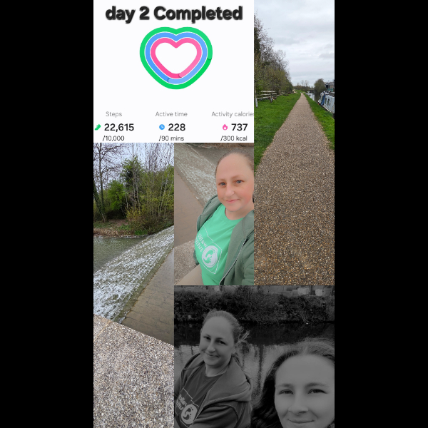 My tracker shows my steps for the 8 days of the challenge from 26th March to 2nd April. My goal progression shows all my steps including any I have done outside of the challenge days.
