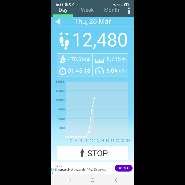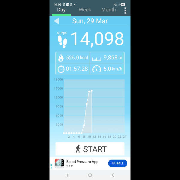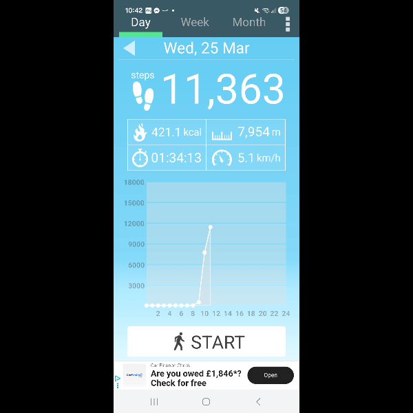 My tracker shows my steps for the 8 days of the challenge from 26th March to 2nd April. My goal progression shows all my steps including any I have done outside of the challenge days.
