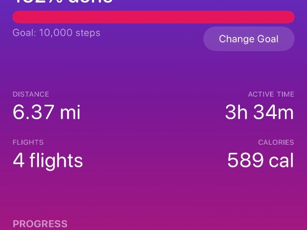 My tracker shows my steps for the 8 days of the challenge from 26th March to 2nd April. My goal progression shows all my steps including any I have done outside of the challenge days.
