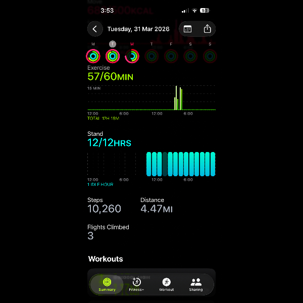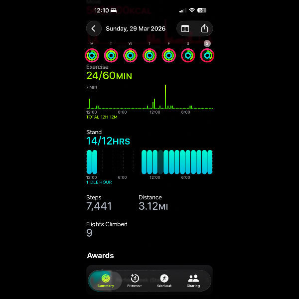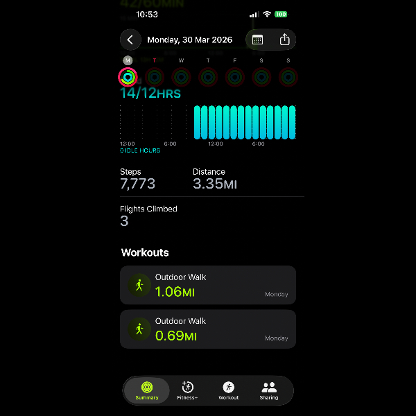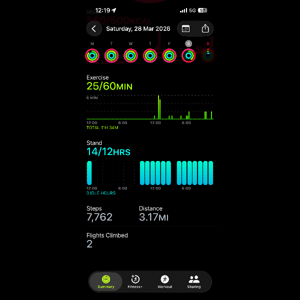 My tracker shows my steps for the 8 days of the challenge from 26th March to 2nd April. My goal progression shows all my steps including any I have done outside of the challenge days.