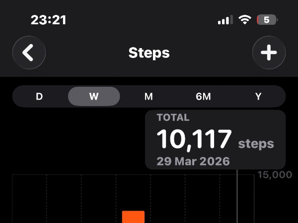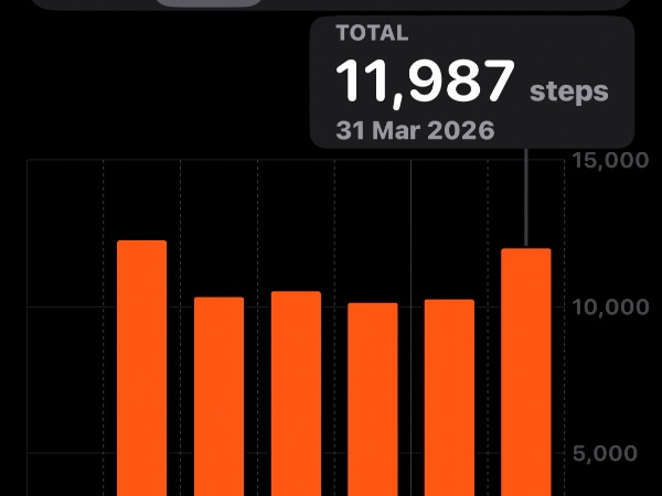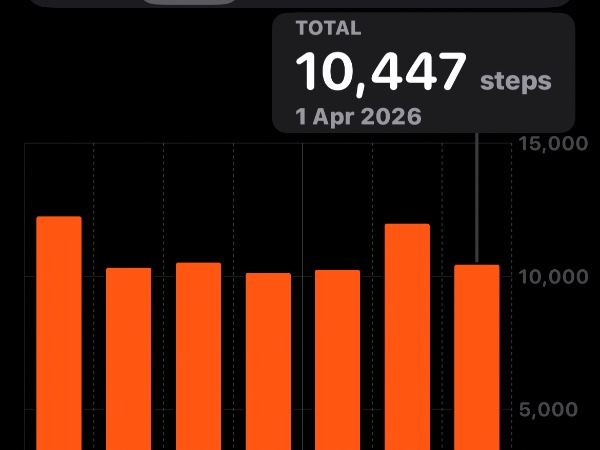 My tracker shows my steps for the 8 days of the challenge from 26th March to 2nd April. My goal progression shows all my steps including any I have done outside of the challenge days.