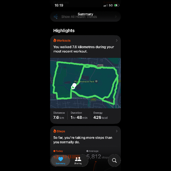 My tracker shows my steps for the 8 days of the challenge from 26th March to 2nd April. My goal progression shows all my steps including any I have done outside of the challenge days.