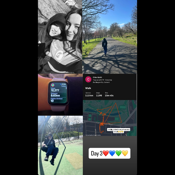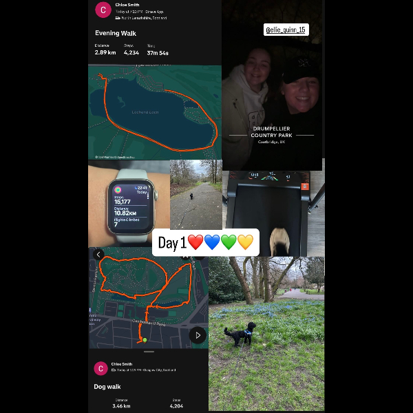 My tracker shows my steps for the 8 days of the challenge from 26th March to 2nd April. My goal progression shows all my steps including any I have done outside of the challenge days.