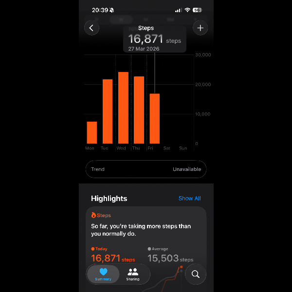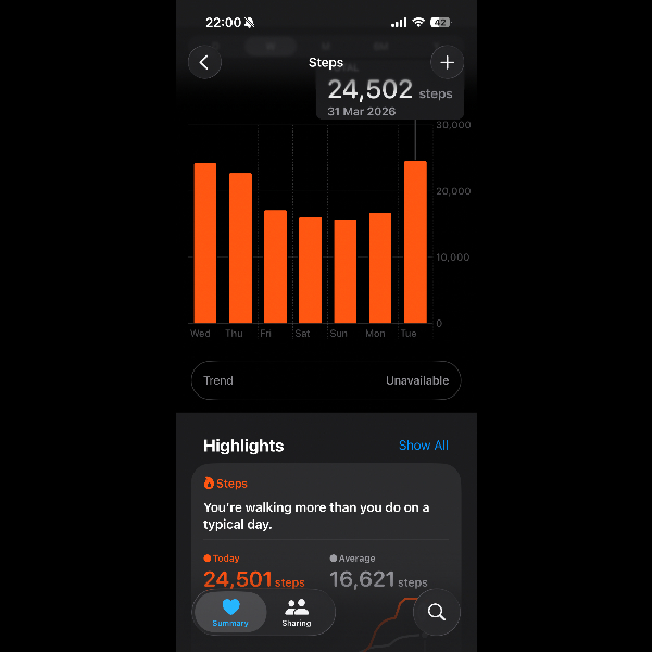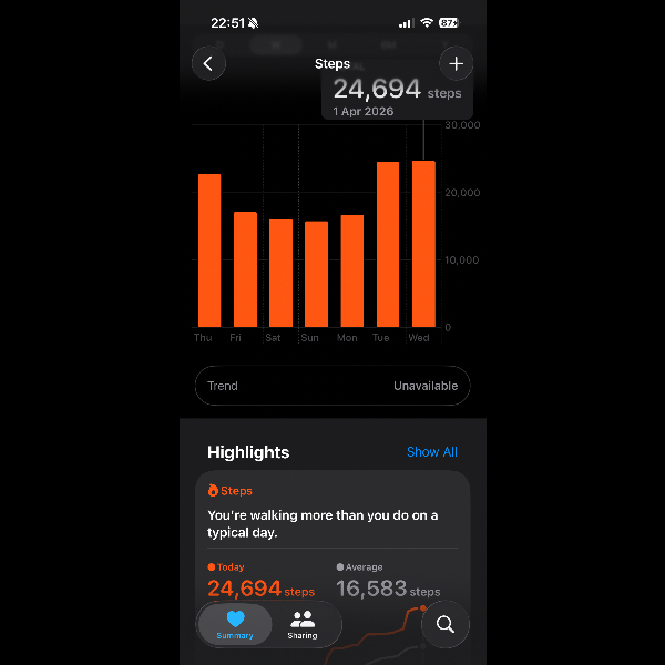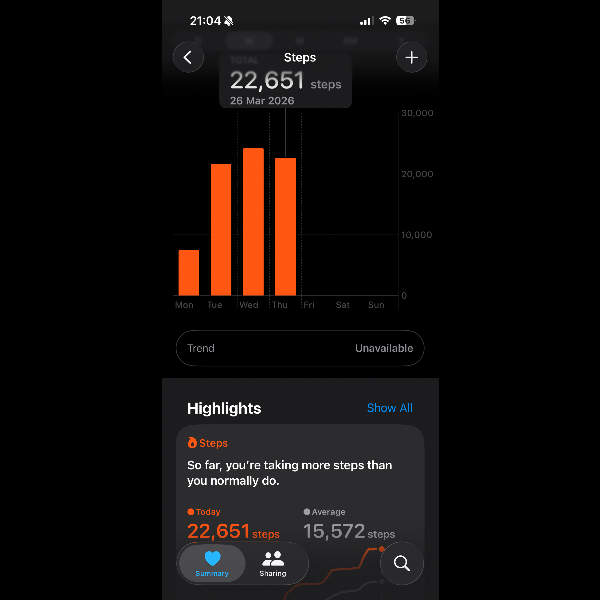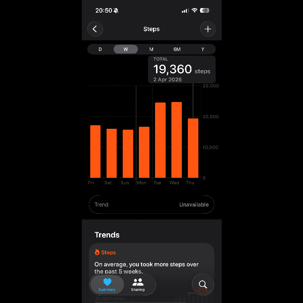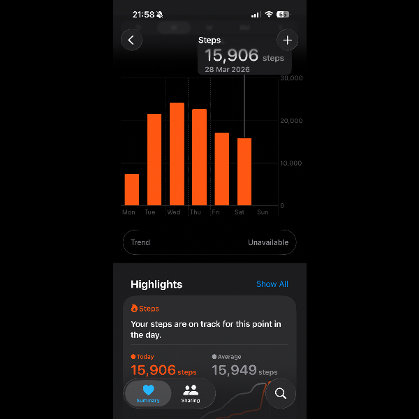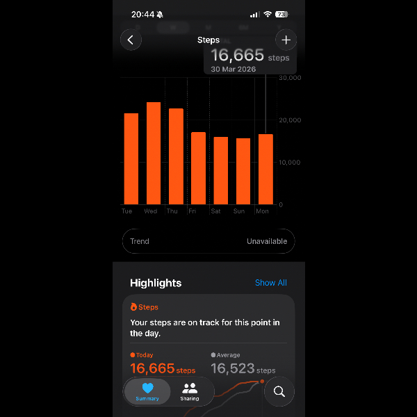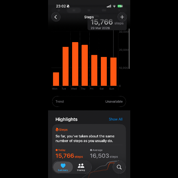 My tracker shows my steps for the 8 days of the challenge from 26th March to 2nd April. My goal progression shows all my steps including any I have done outside of the challenge days.