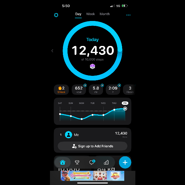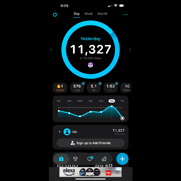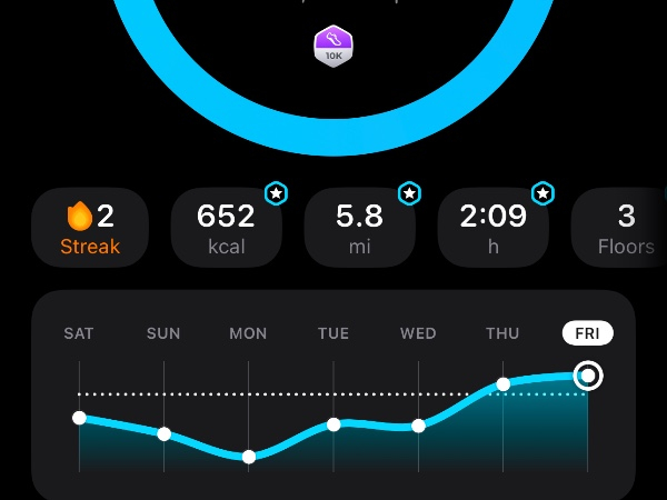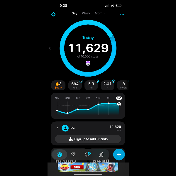 My tracker shows my steps for the 8 days of the challenge from 26th March to 2nd April. My goal progression shows all my steps including any I have done outside of the challenge days.