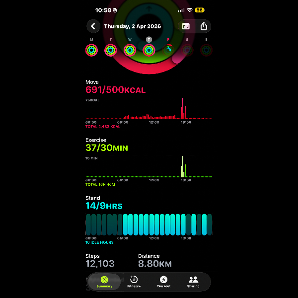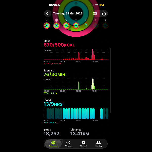 My tracker shows my steps for the 8 days of the challenge from 26th March to 2nd April. My goal progression shows all my steps including any I have done outside of the challenge days.