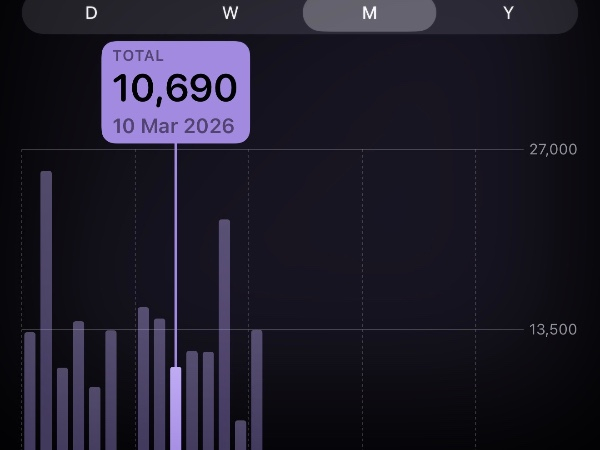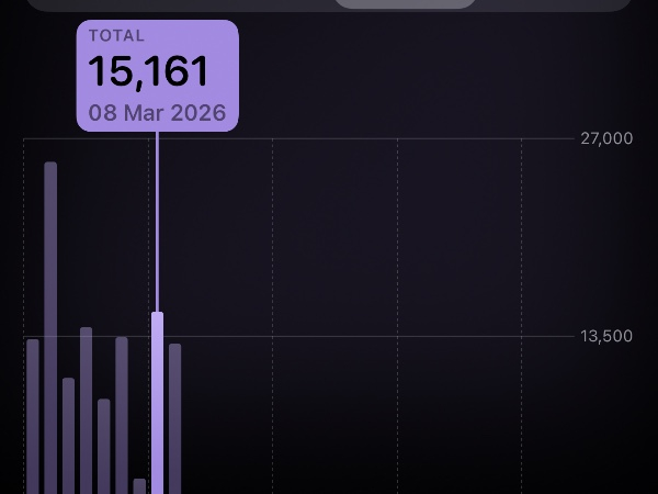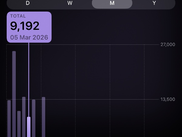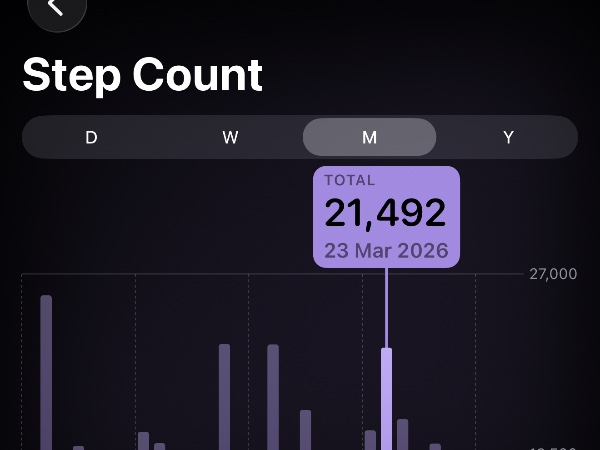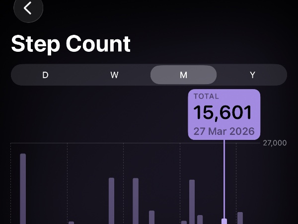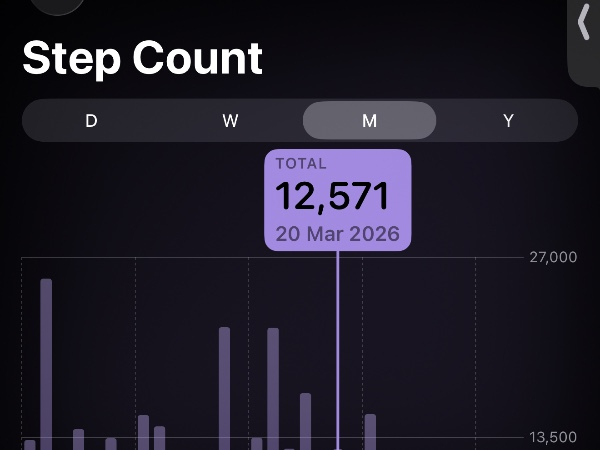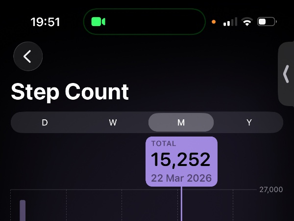 My tracker shows my steps for the 8 days of the challenge from 26th March to 2nd April. My goal progression shows all my steps including any I have done outside of the challenge days.