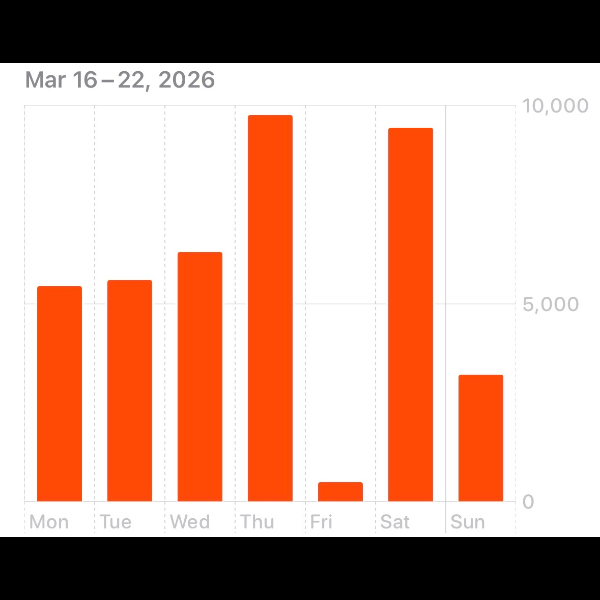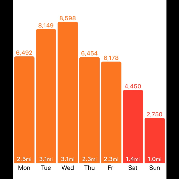 Saturday 7th Mar It’s only been 6 days and I’m already half way of my 80,000 steps this month Share