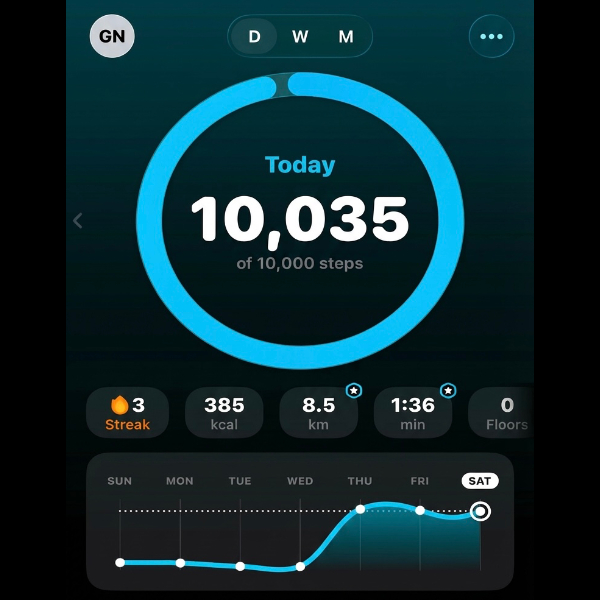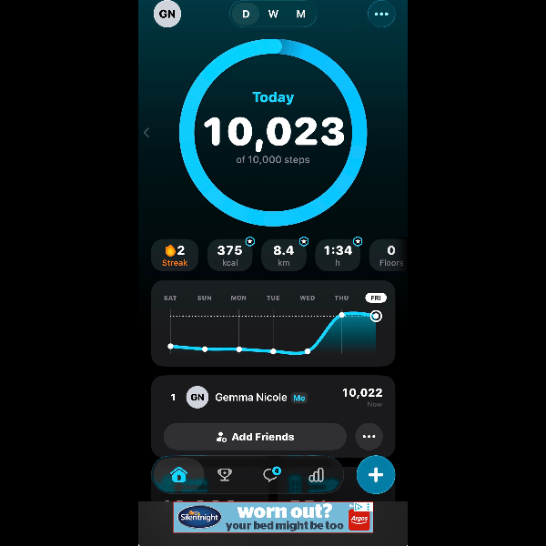 My tracker shows my steps for the 8 days of the challenge from 26th March to 2nd April. My goal progression shows all my steps including any I have done outside of the challenge days.