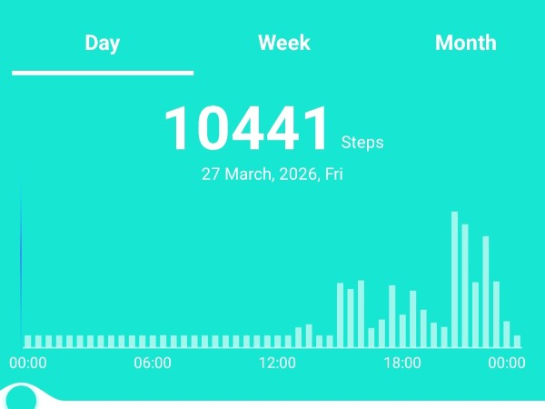My tracker shows my steps for the 8 days of the challenge from 26th March to 2nd April. My goal progression shows all my steps including any I have done outside of the challenge days.
