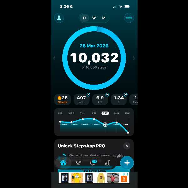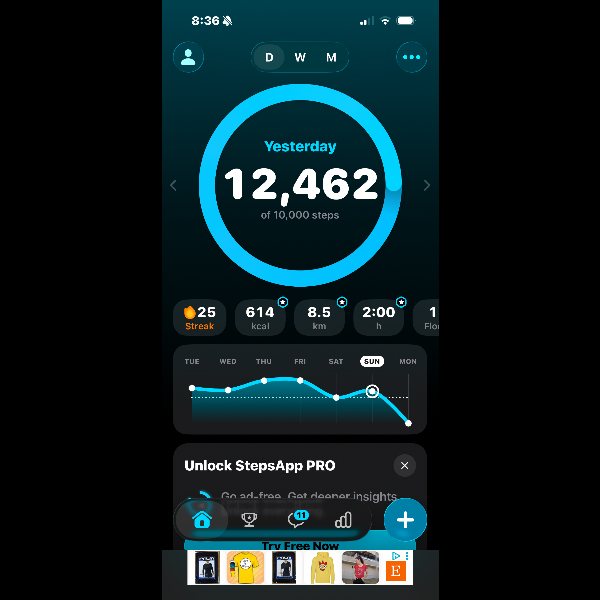 Steps walked so far:
