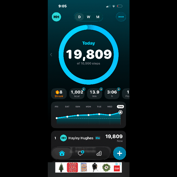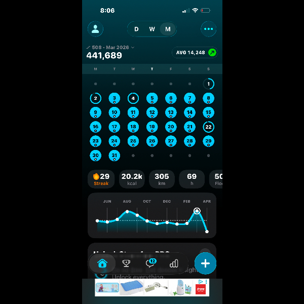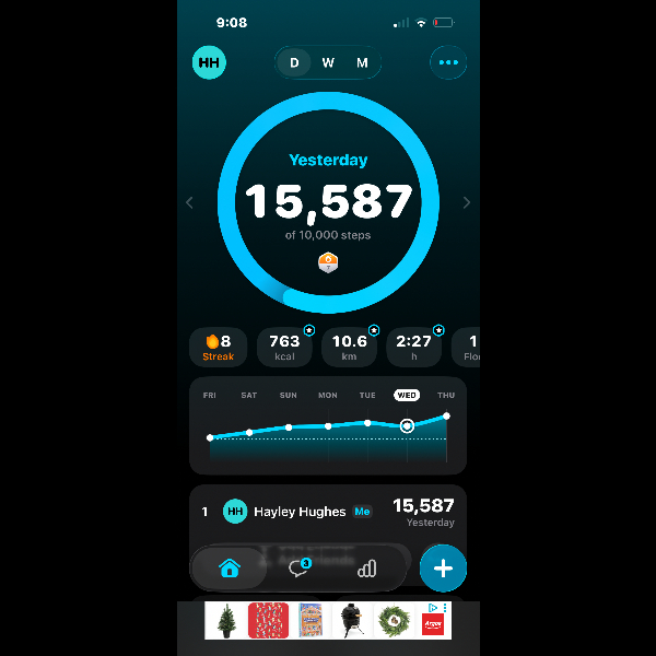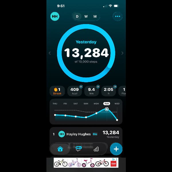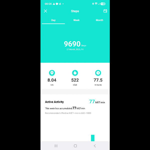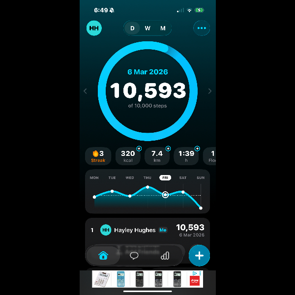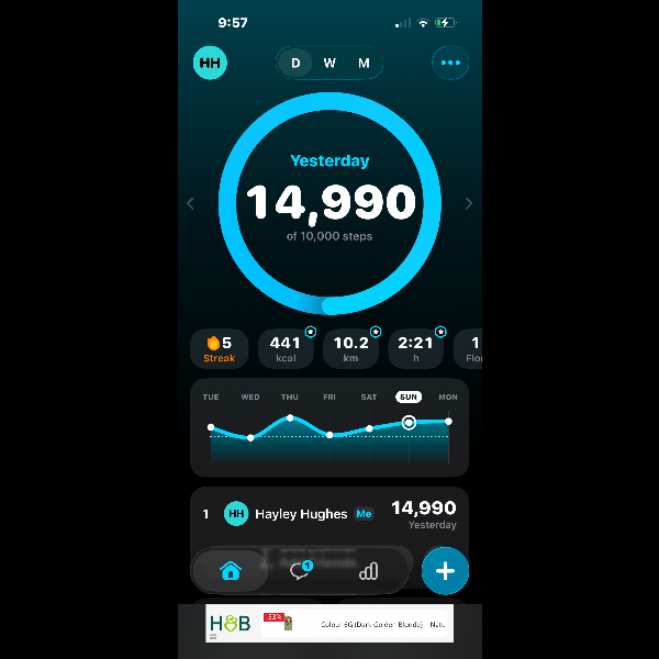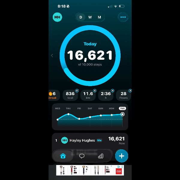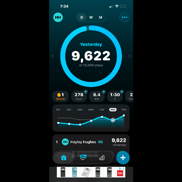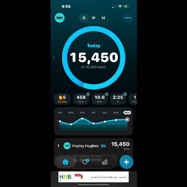 My tracker shows my steps for the 8 days of the challenge from 26th March to 2nd April. My goal progression shows all my steps including any I have done outside of the challenge days.