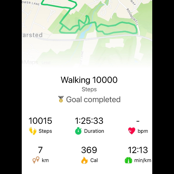 My tracker shows my steps for the 8 days of the challenge from 26th March to 2nd April. My goal progression shows all my steps including any I have done outside of the challenge days.