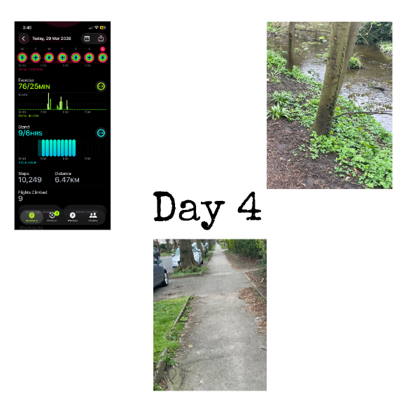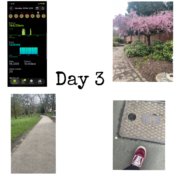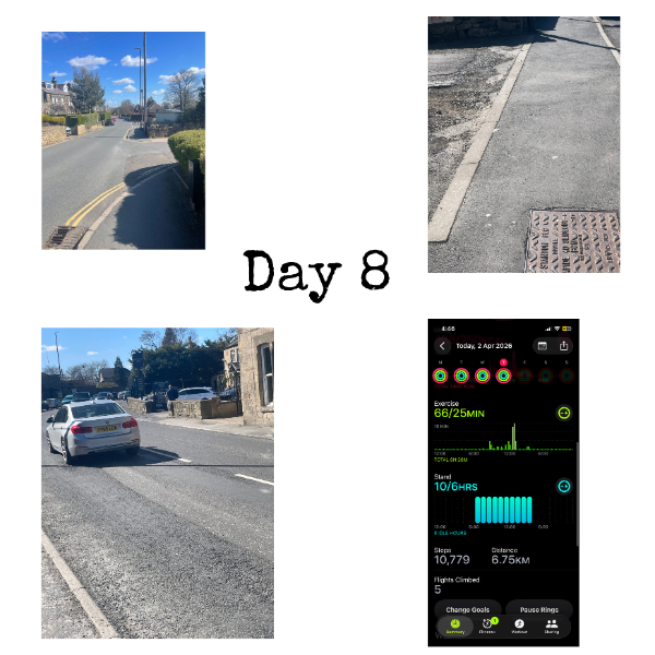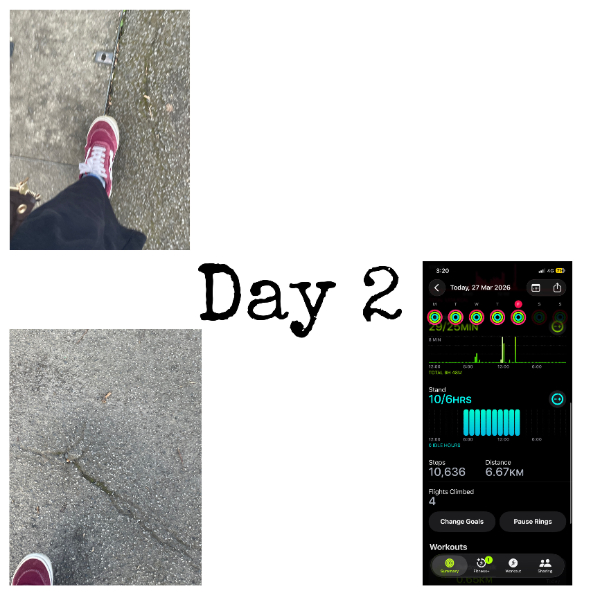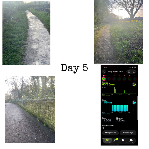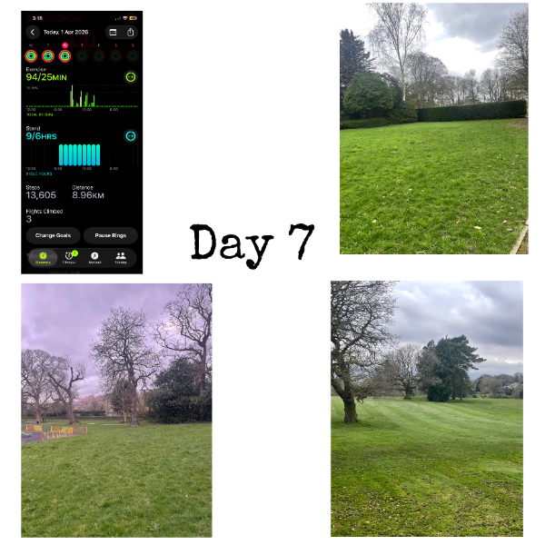 My tracker shows my steps for the 8 days of the challenge from 26th March to 2nd April. My goal progression shows all my steps including any I have done outside of the challenge days.