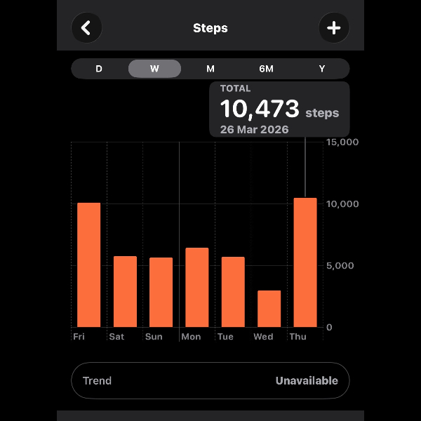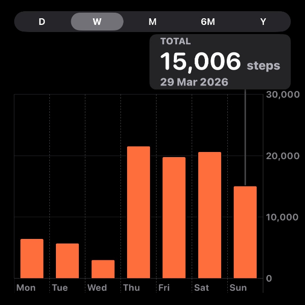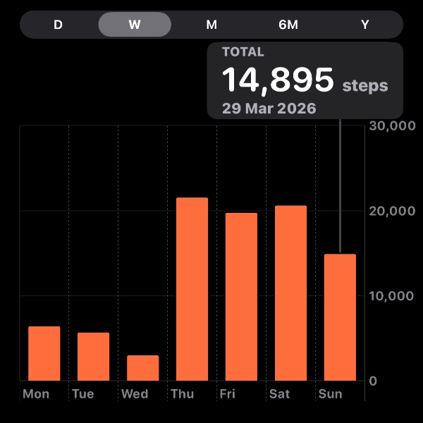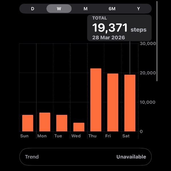 My tracker shows my steps for the 8 days of the challenge from 26th March to 2nd April. My goal progression shows all my steps including any I have done outside of the challenge days.