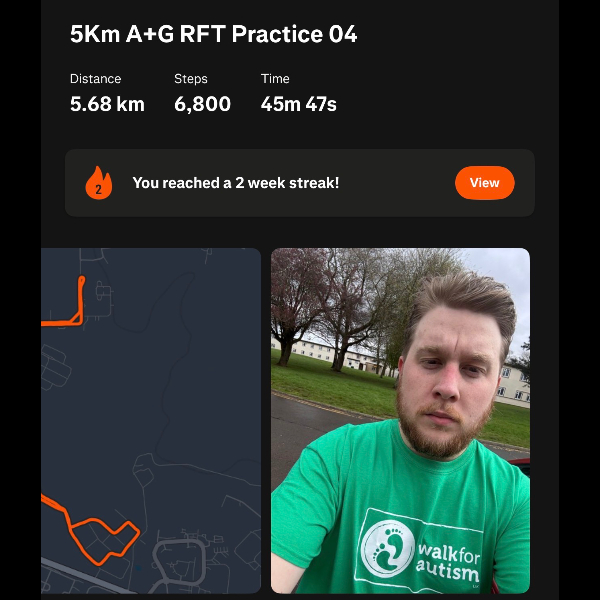 Hello from the Walk for Autism Page! Massive congratulations for the hard work and effort you are putting in, from Kelly, a very tired Special Needs Teaching Assistant who is very much looking forward to sitting down for the rest of the school holidays as soon as I hit my target or 110,000 steps! X Keep it up! Legend!