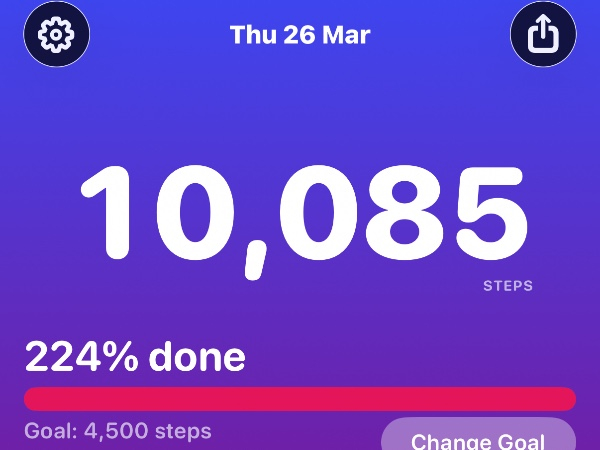 My tracker shows my steps for the 8 days of the challenge from 26th March to 2nd April. My goal progression shows all my steps including any I have done outside of the challenge days.
