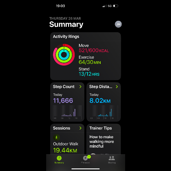 My tracker shows my steps for the 8 days of the challenge from 26th March to 2nd April. My goal progression shows all my steps including any I have done outside of the challenge days.