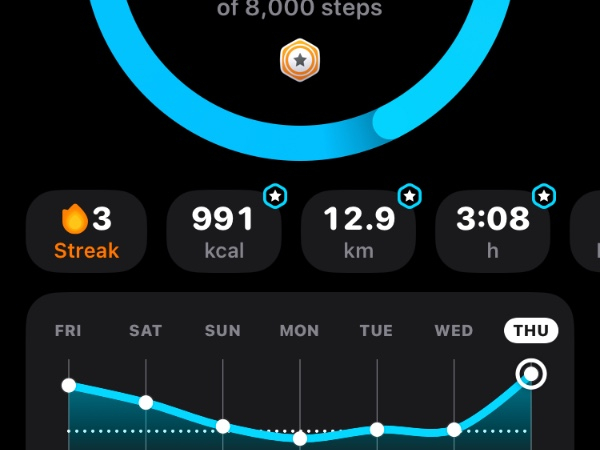 My tracker shows my steps for the 8 days of the challenge from 26th March to 2nd April. My goal progression shows all my steps including any I have done outside of the challenge days.