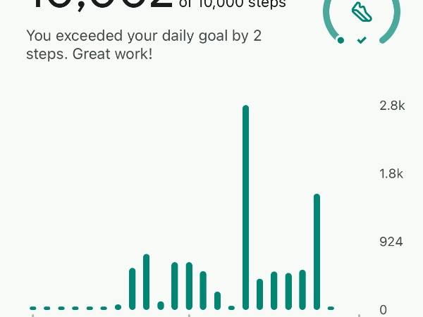 My tracker shows my steps for the 8 days of the challenge from 26th March to 2nd April. My goal progression shows all my steps including any I have done outside of the challenge days.