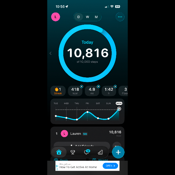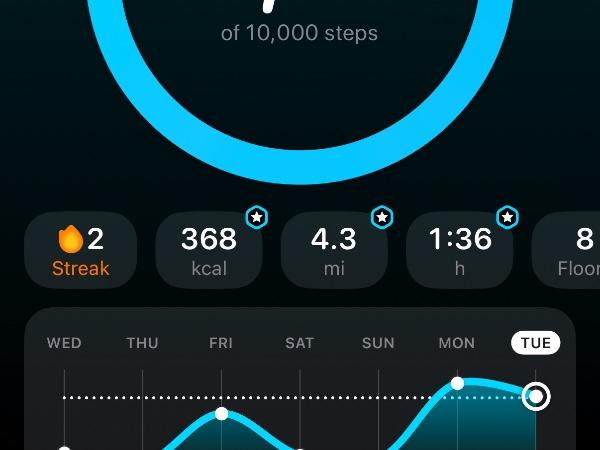 My tracker shows my steps for the 8 days of the challenge from 26th March to 2nd April. My goal progression shows all my steps including any I have done outside of the challenge days.