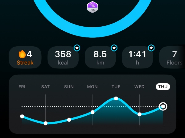 My tracker shows my steps for the 8 days of the challenge from 26th March to 2nd April. My goal progression shows all my steps including any I have done outside of the challenge days.