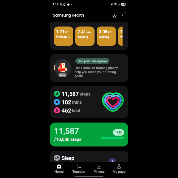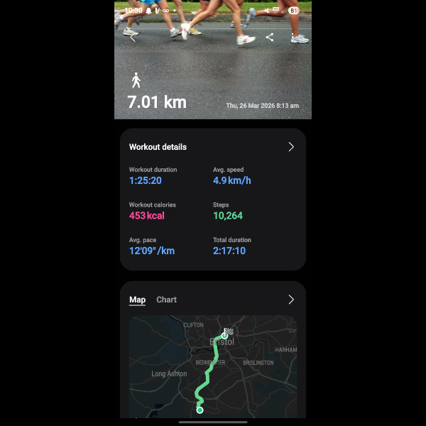 My tracker shows my steps for the 8 days of the challenge from 26th March to 2nd April. My goal progression shows all my steps including any I have done outside of the challenge days.