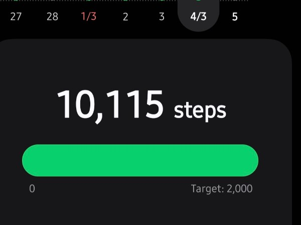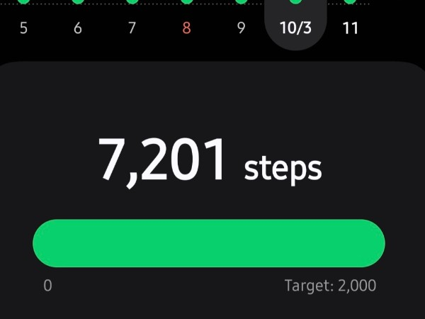 My tracker shows my steps for the 8 days of the challenge from 26th March to 2nd April. My goal progression shows all my steps including any I have done outside of the challenge days.