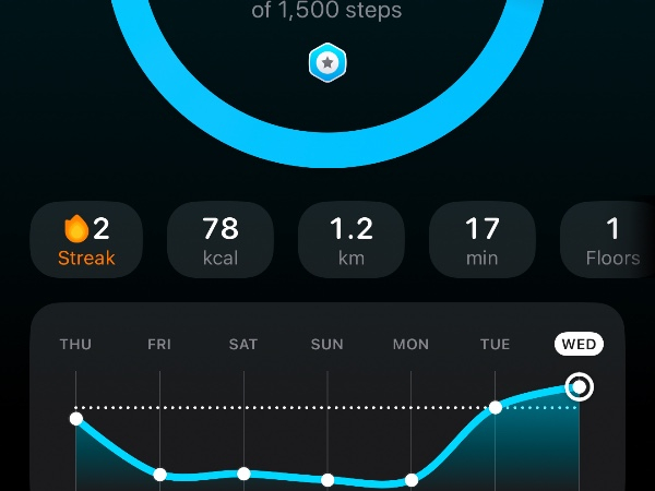 My tracker shows my steps for the 8 days of the challenge from 26th March to 2nd April. My goal progression shows all my steps including any I have done outside of the challenge days.