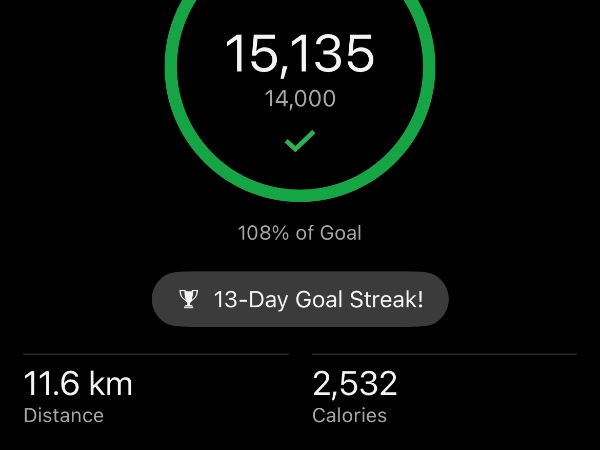 My tracker shows my steps for the 8 days of the challenge from 26th March to 2nd April. My goal progression shows all my steps including any I have done outside of the challenge days.