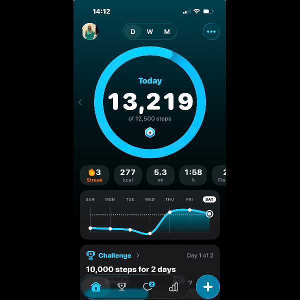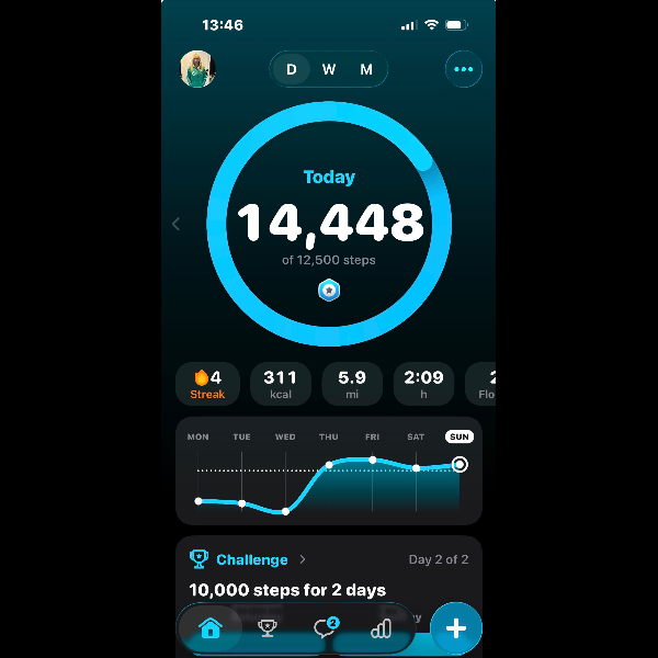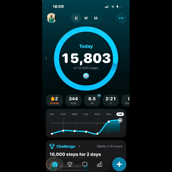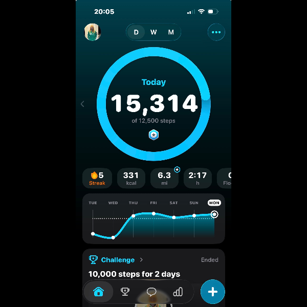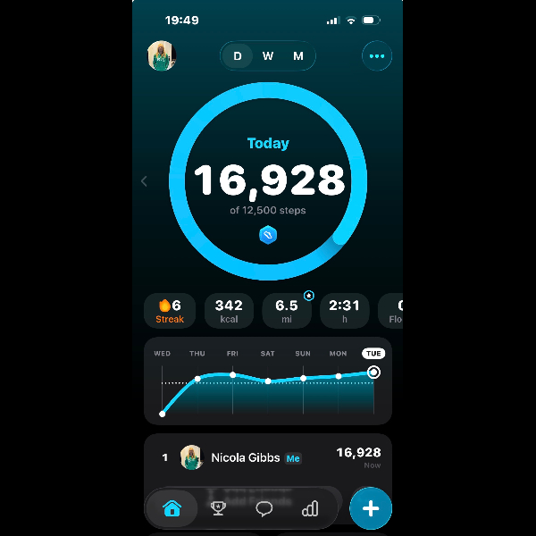 My tracker shows my steps for the 8 days of the challenge from 26th March to 2nd April. My goal progression shows all my steps including any I have done outside of the challenge days.
