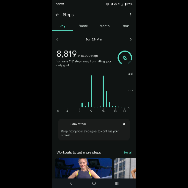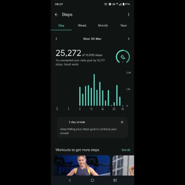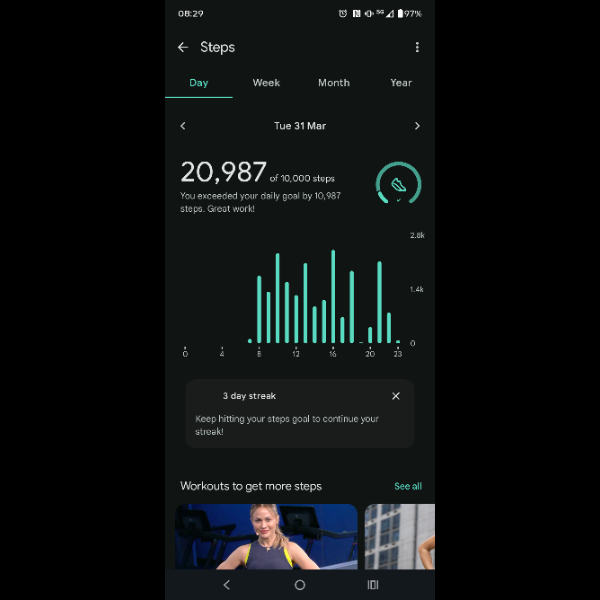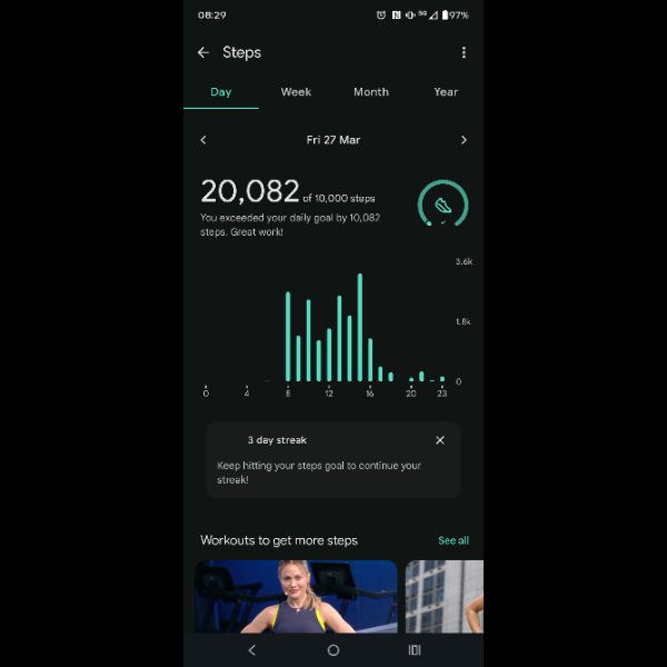 My tracker shows my steps for the 8 days of the challenge from 26th March to 2nd April. My goal progression shows all my steps including any I have done outside of the challenge days.