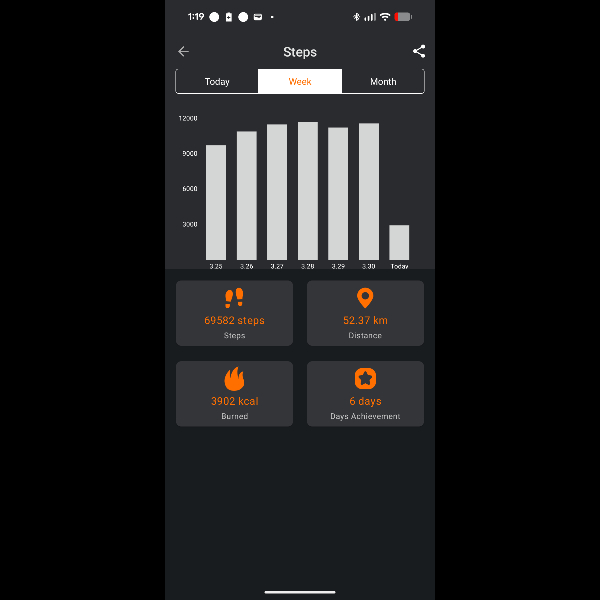 My tracker shows my steps for the 8 days of the challenge from 26th March to 2nd April. My goal progression shows all my steps including any I have done outside of the challenge days.