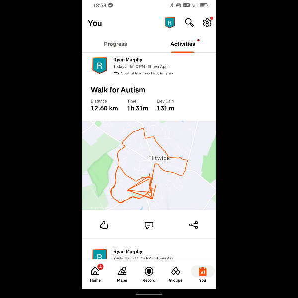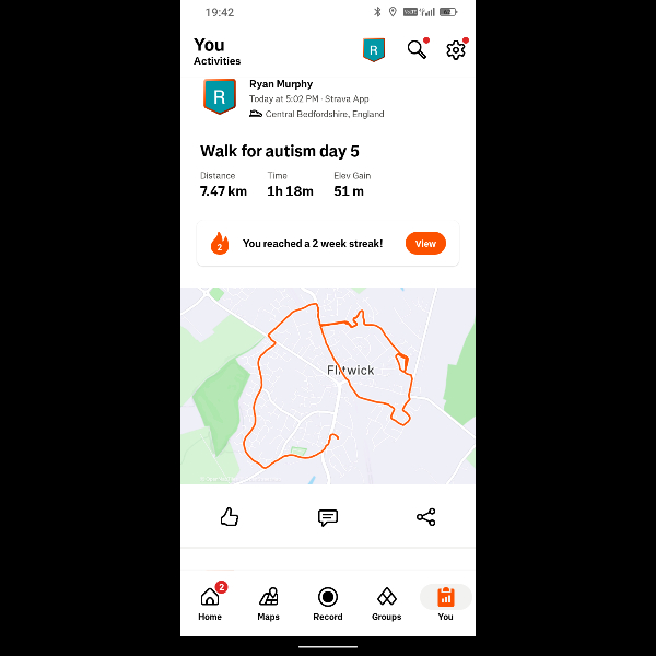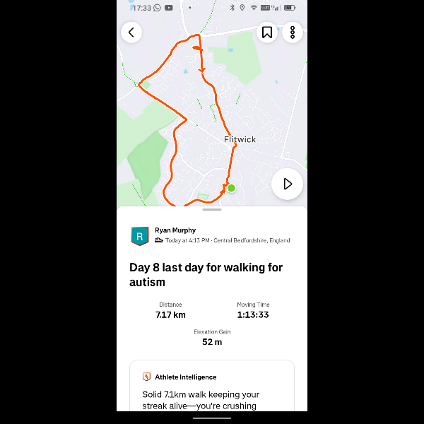 Thursday 2nd Apr I did a some while was at work as I was mostly up and down the garden moving stuff today and managed to get over 7,000 steps in. I have a big walk planned for tomorrow for the last day and I would of smashed the target. Keep going strong but most importantly make awness of autism Share