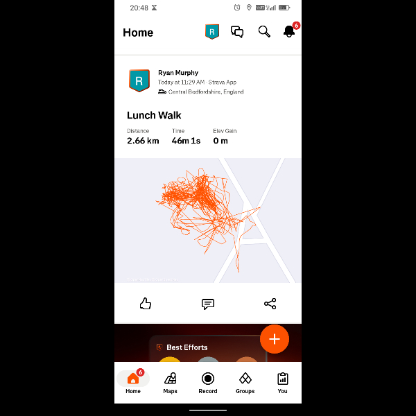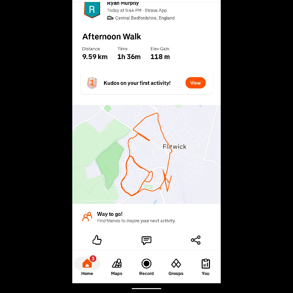 Sunday 29th Mar realised after the first part of the walk my battery was running low so had to come home to charge it so I didn't lose my progress. Managed to do 8110 steps still though. I will make sure my battery is charged properly tomorrow Share