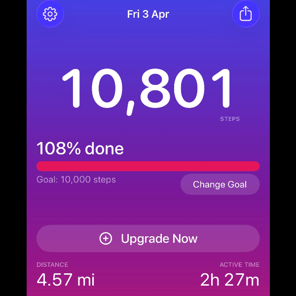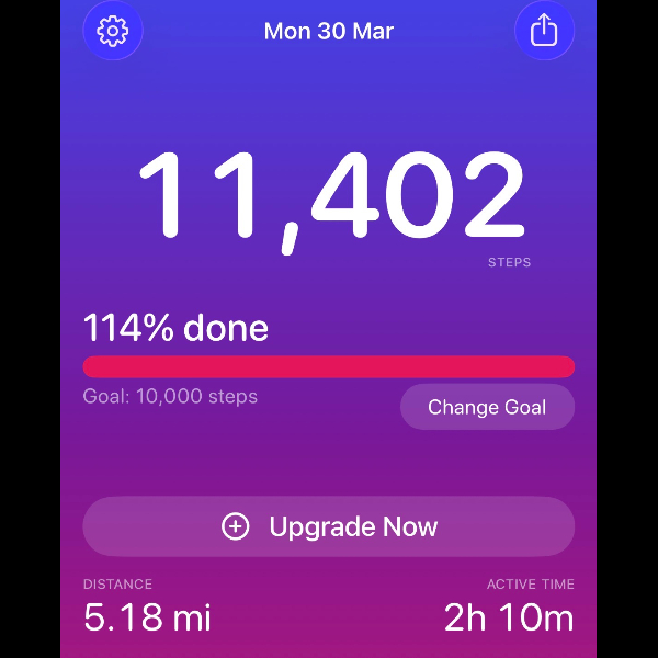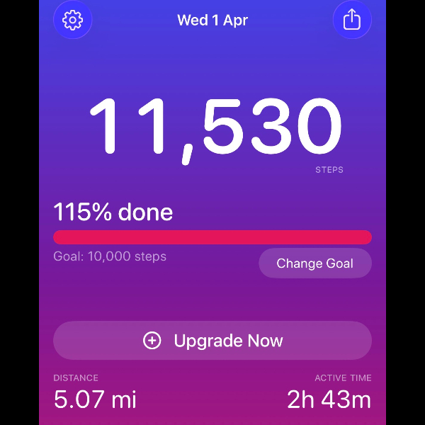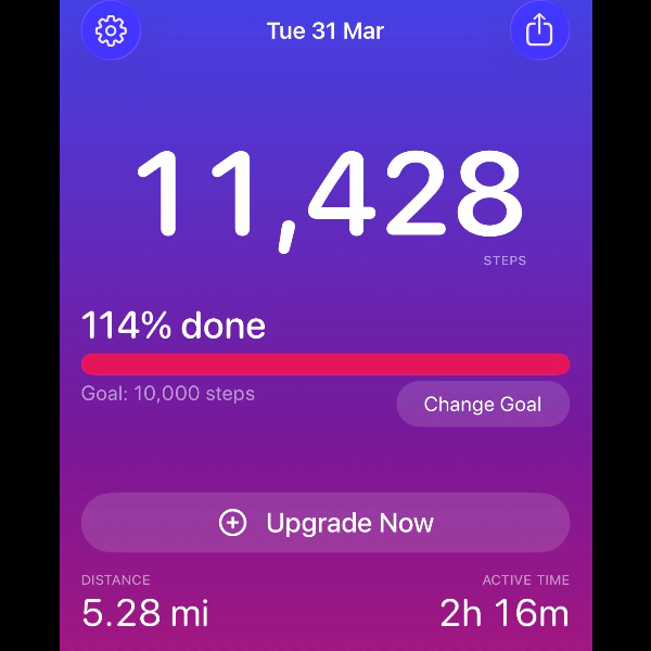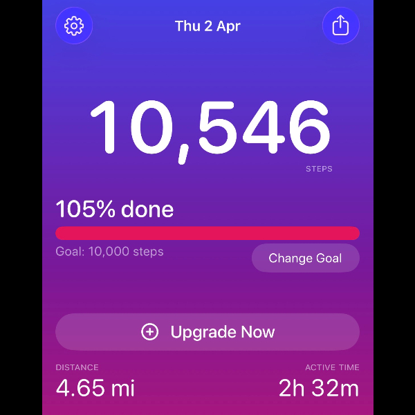 My tracker shows my steps for the 8 days of the challenge from 26th March to 2nd April. My goal progression shows all my steps including any I have done outside of the challenge days.