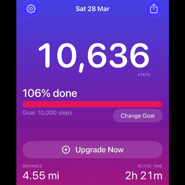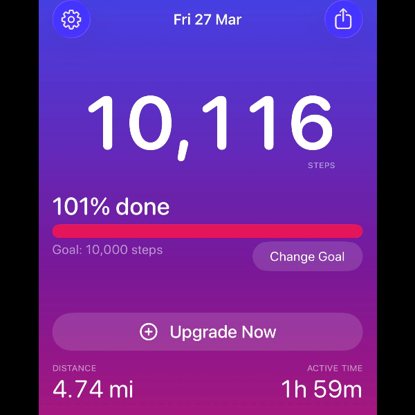 Friday 27th Mar I’m unfortunately a day behind with my daily challenge of completing 10,000 steps each day. I was discharged from hospital earlier on today due to illness. I have fought hard this evening to catch up with today’s steps, whilst trying to listen to my body. I had to break it up into separate sessions to complete it today as I just couldn’t quite manage 10,000 in one go. Fortunately I have been able to complete today’s steps on my own treadmill at home. I’m going to be honest, it hasn’t been easy, and I’m now exhausted, but I will rest up now and hopefully feel a little stronger as each day goes by and endeavour to be back on track. Thank you to everyone who has supported me on this challenge so far. Share