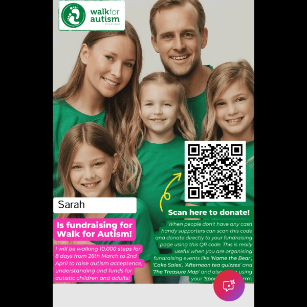 I'll be walking 10,000 steps a day from 26th March to 2nd April to raise money for this fantastic charity. Please sponsor me.