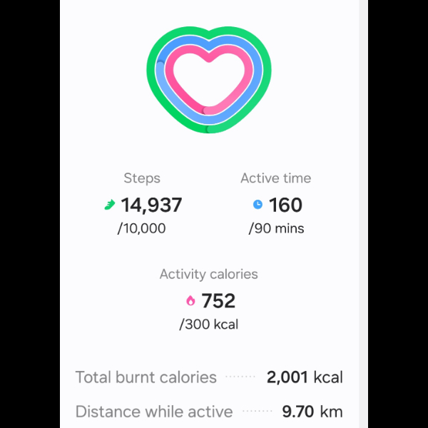 My tracker shows my steps for the 8 days of the challenge from 26th March to 2nd April. My goal progression shows all my steps including any I have done outside of the challenge days.