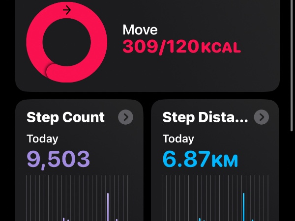 My tracker shows my steps for the 8 days of the challenge from 26th March to 2nd April. My goal progression shows all my steps including any I have done outside of the challenge days.