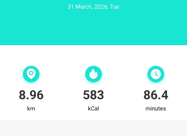 My tracker shows my steps for the 8 days of the challenge from 26th March to 2nd April. My goal progression shows all my steps including any I have done outside of the challenge days.