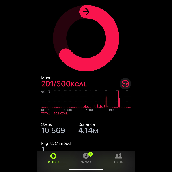My tracker shows my steps for the 8 days of the challenge from 26th March to 2nd April. My goal progression shows all my steps including any I have done outside of the challenge days.