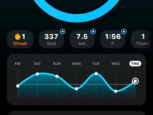 My tracker shows my steps for the 8 days of the challenge from 26th March to 2nd April. My goal progression shows all my steps including any I have done outside of the challenge days.