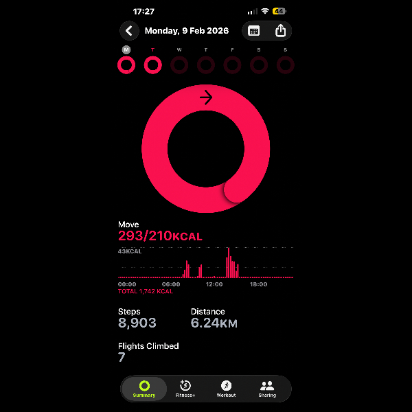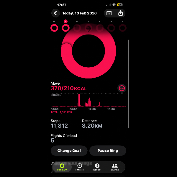My tracker shows my steps for the 8 days of the challenge from 26th March to 2nd April. My goal progression shows all my steps including any I have done outside of the challenge days.
