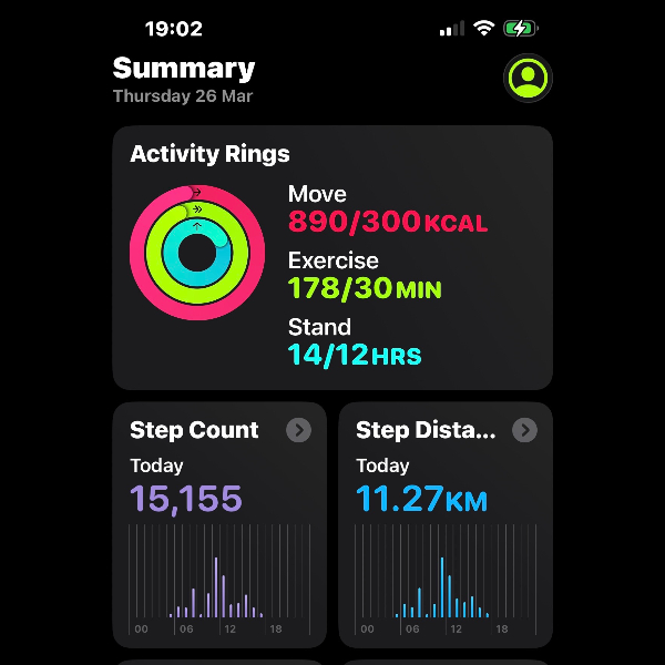 My tracker shows my steps for the 8 days of the challenge from 26th March to 2nd April. My goal progression shows all my steps including any I have done outside of the challenge days.